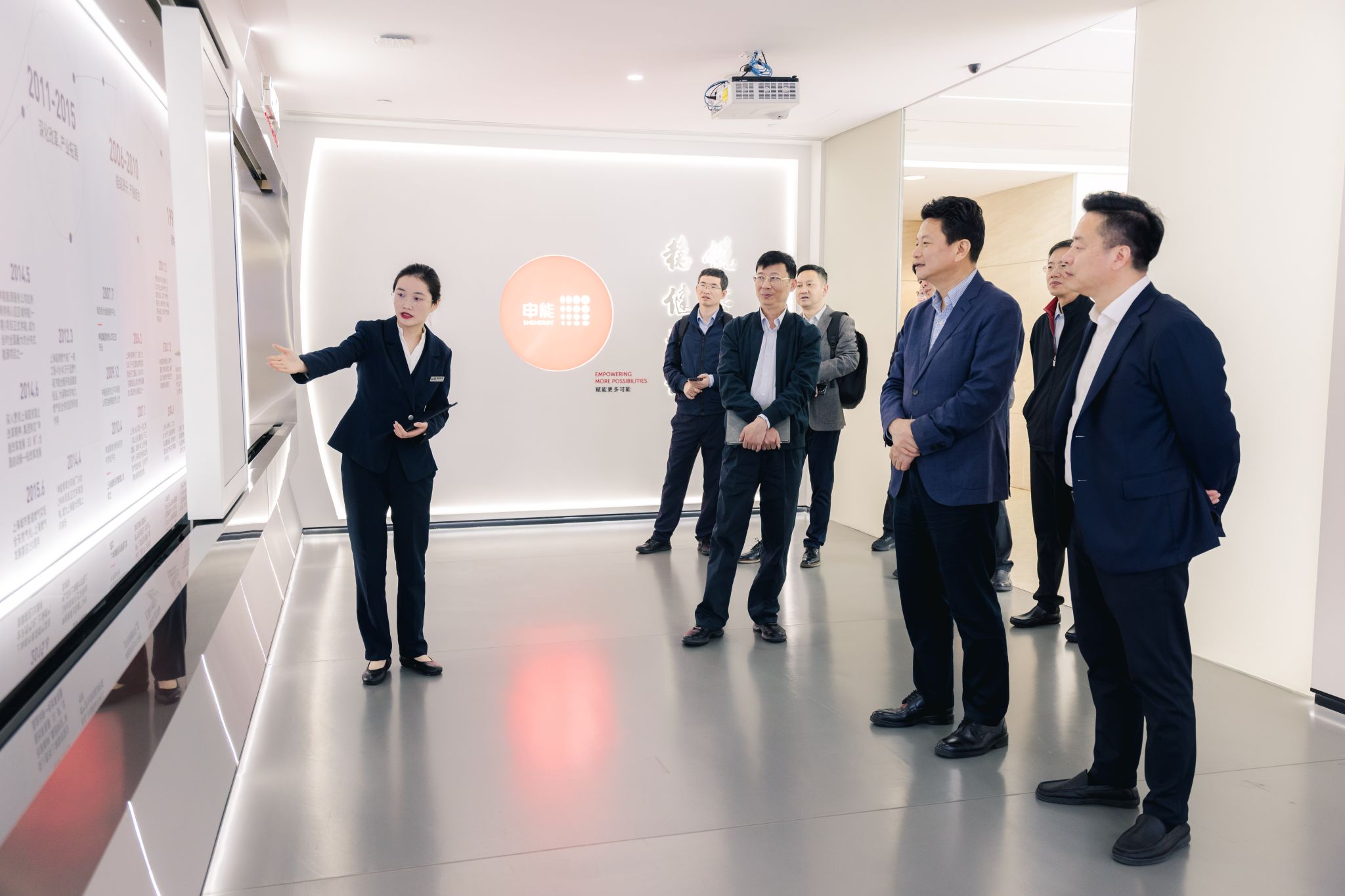 会谈前,李明参观了申能集团展示厅,了解企业发展历程、产业布局和文化愿景等。
